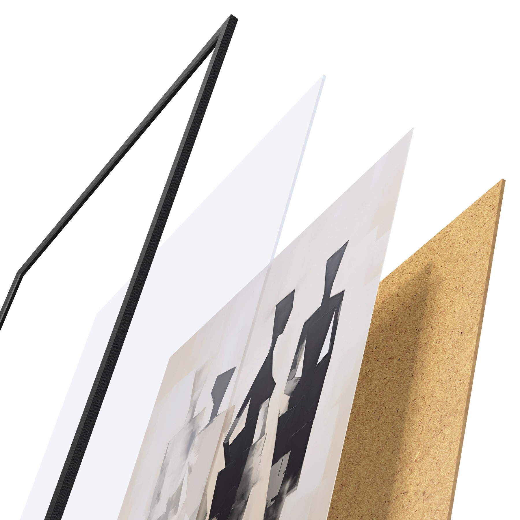 Plakatą sudaro rėmas, pleksiklas, atspausdintas vaizdas ir medžio drožlių plokštės pagrindas. Plakatą galima iš karto pakabinti ant sienos dėl kitoje pusėje esančių laikiklių.