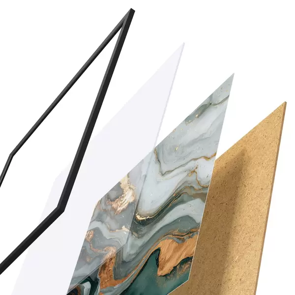 Plakatą sudaro rėmas, pleksiklas, atspausdintas vaizdas ir medžio drožlių plokštės pagrindas. Plakatą galima iš karto pakabinti ant sienos dėl kitoje pusėje esančių laikiklių.