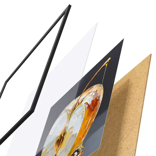 Plakatą sudaro rėmas, pleksiklas, atspausdintas vaizdas ir medžio drožlių plokštės pagrindas. Plakatą galima iš karto pakabinti ant sienos dėl kitoje pusėje esančių laikiklių.