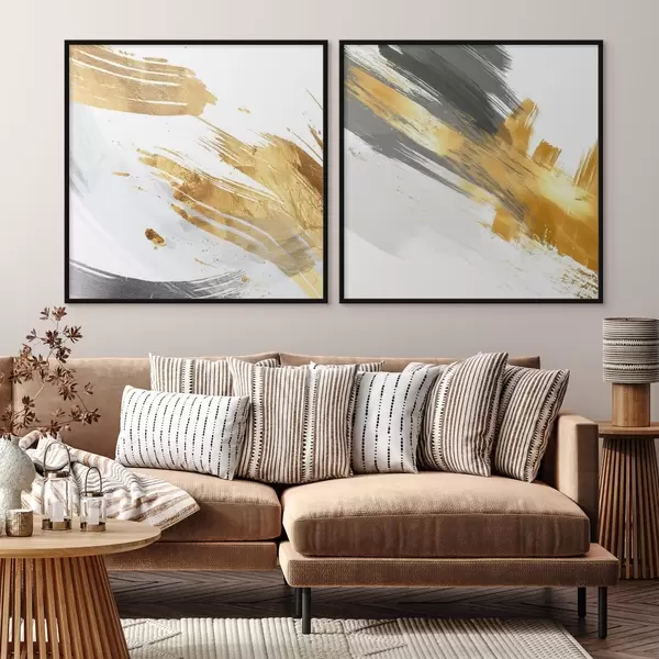 Plakatas Dinamiška abstrakcija su geltonomis ir pilkomis linijomis d00748