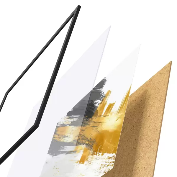 Plakatą sudaro rėmas, pleksiklas, atspausdintas vaizdas ir medžio drožlių plokštės pagrindas. Plakatą galima iš karto pakabinti ant sienos dėl kitoje pusėje esančių laikiklių.