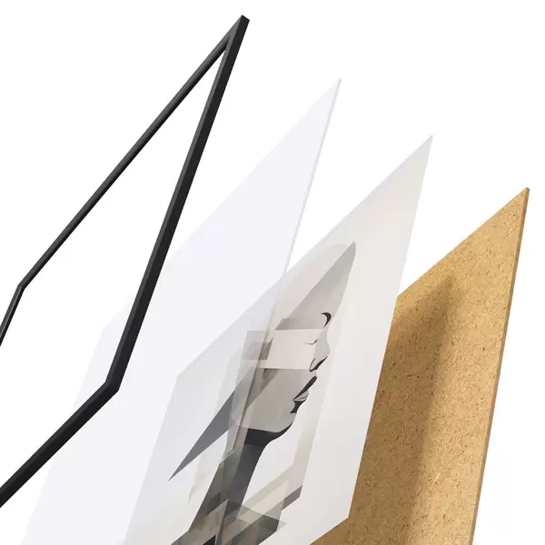 Plakatą sudaro rėmas, pleksiklas, atspausdintas vaizdas ir medžio drožlių plokštės pagrindas. Plakatą galima iš karto pakabinti ant sienos dėl kitoje pusėje esančių laikiklių.