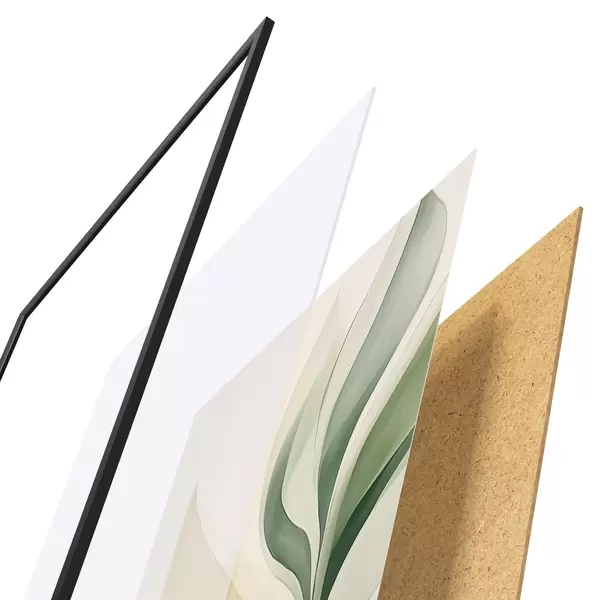 Plakatą sudaro rėmas, pleksiklas, atspausdintas vaizdas ir medžio drožlių plokštės pagrindas. Plakatą galima iš karto pakabinti ant sienos dėl kitoje pusėje esančių laikiklių.