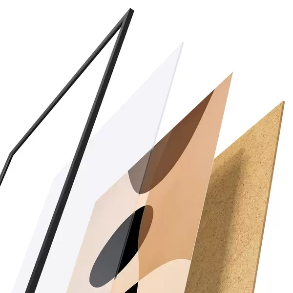 Plakatą sudaro rėmas, pleksiklas, atspausdintas vaizdas ir medžio drožlių plokštės pagrindas. Plakatą galima iš karto pakabinti ant sienos dėl kitoje pusėje esančių laikiklių.