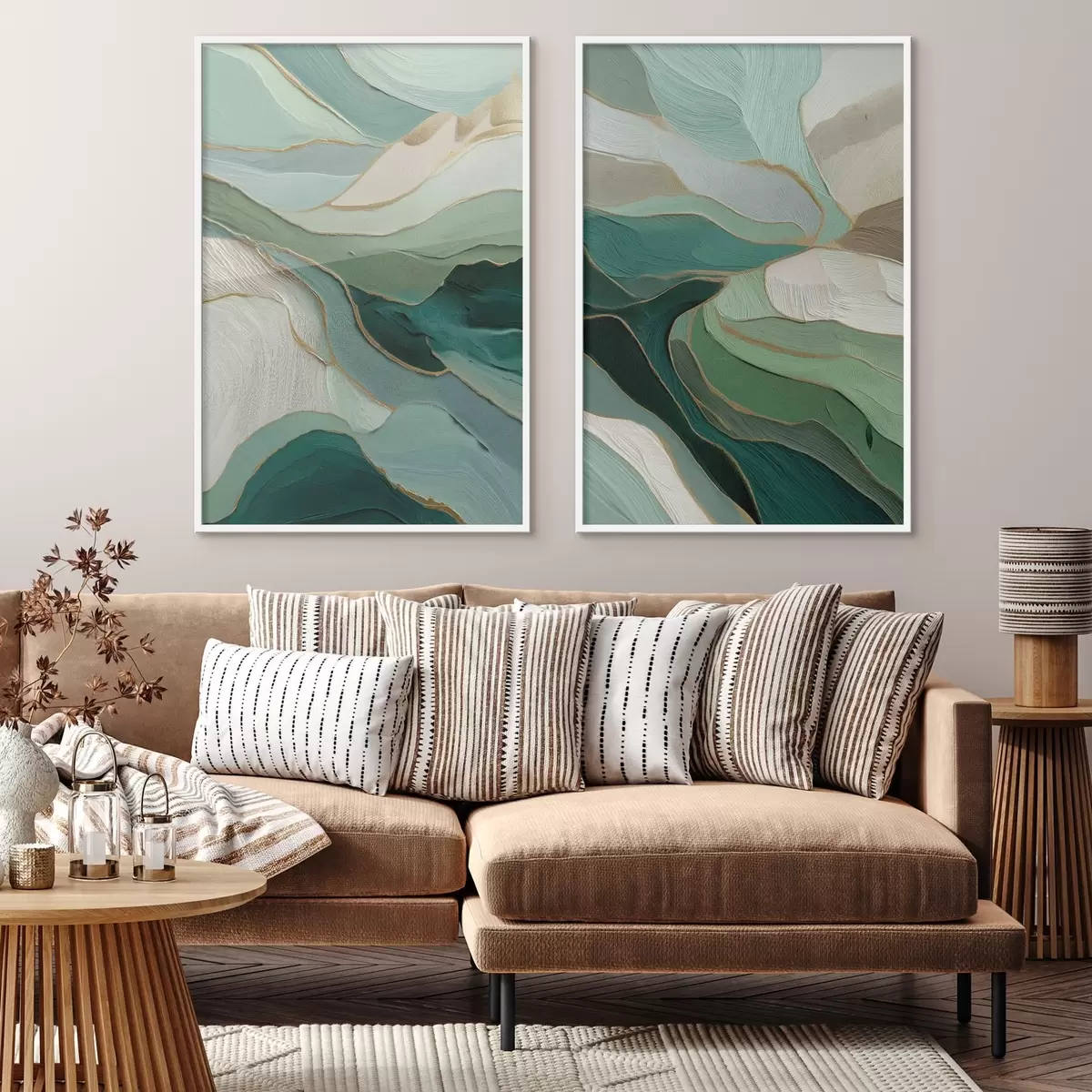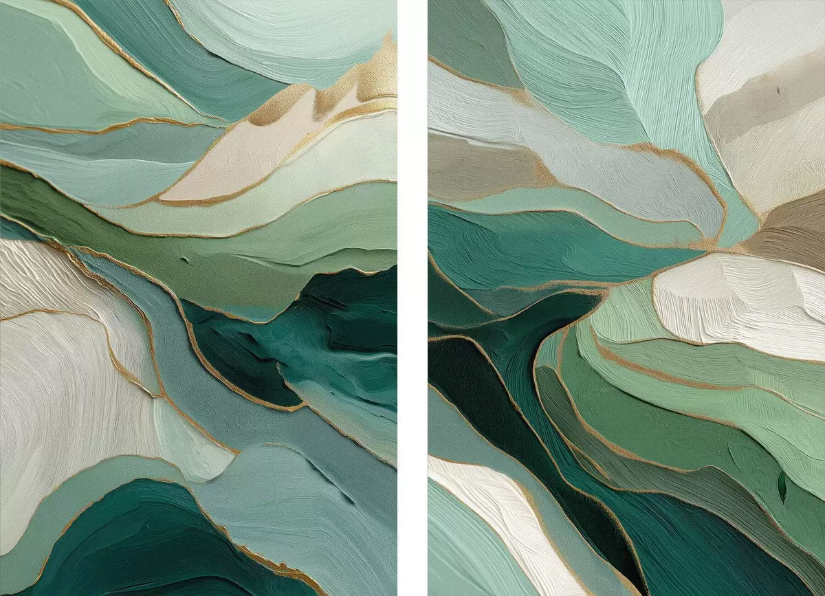 Plakatas Smaragdo spalvos sluoksniuota abstrakcija su geltonu kontūru Ne d00766