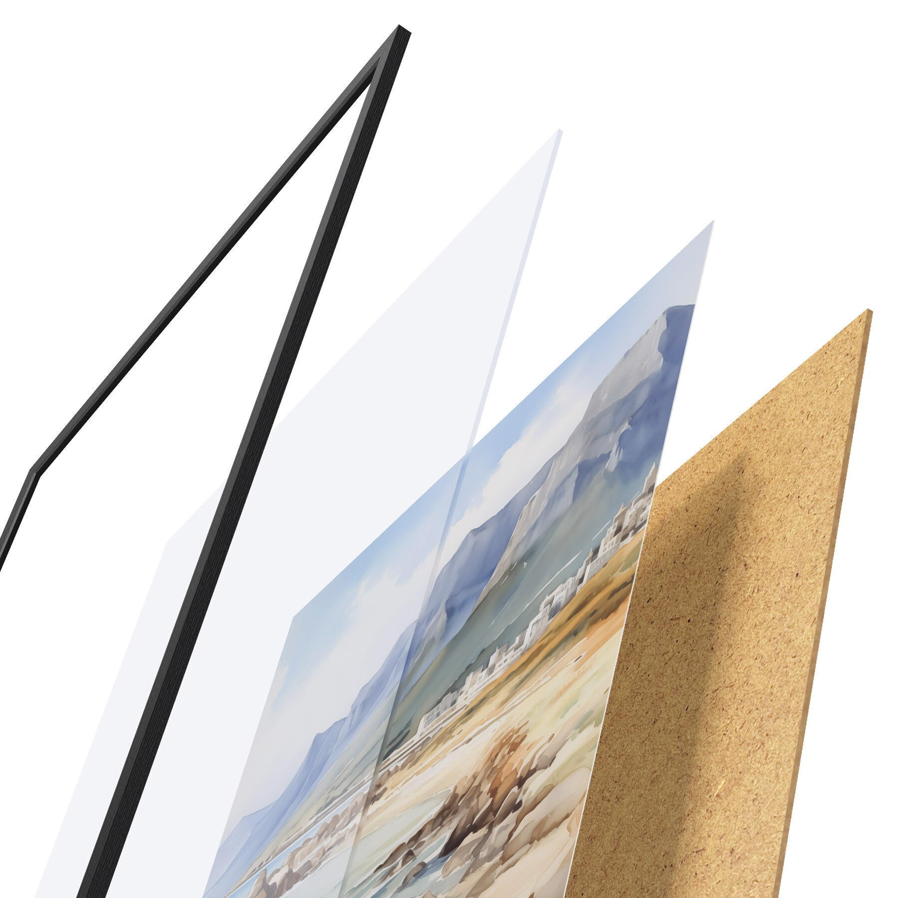 Plakatą sudaro rėmas, pleksiklas, atspausdintas vaizdas ir medžio drožlių plokštės pagrindas. Plakatą galima iš karto pakabinti ant sienos dėl kitoje pusėje esančių laikiklių.
