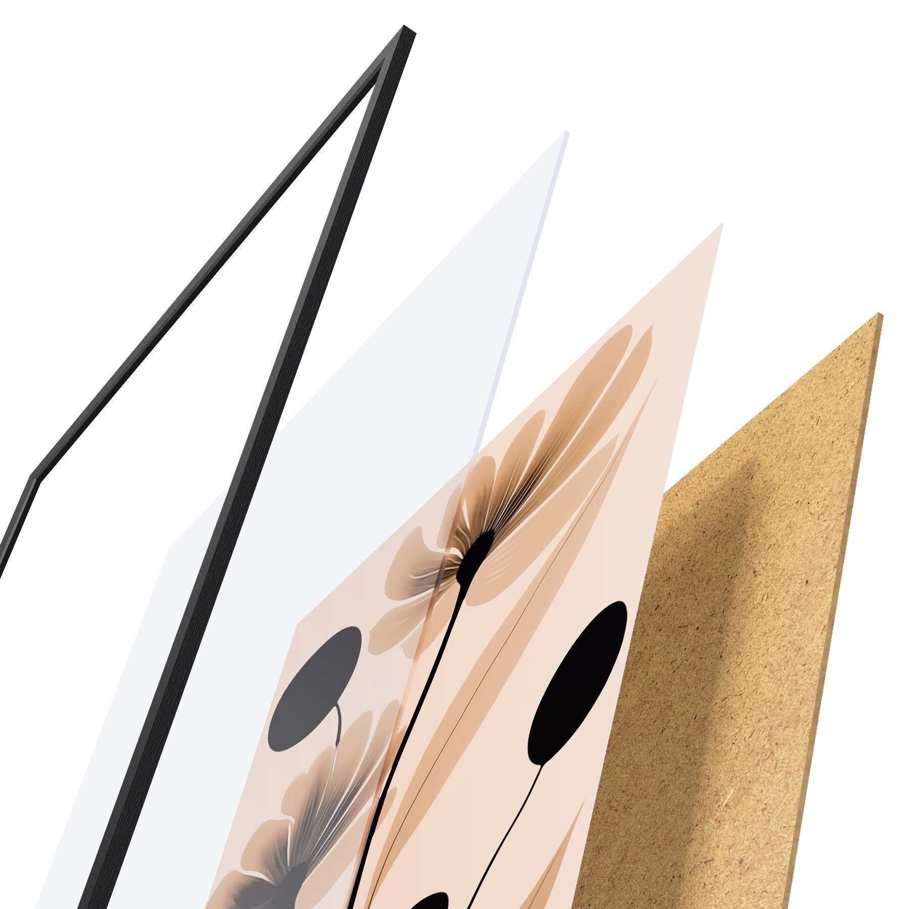 Plakatą sudaro rėmas, pleksiklas, atspausdintas vaizdas ir medžio drožlių plokštės pagrindas. Plakatą galima iš karto pakabinti ant sienos dėl kitoje pusėje esančių laikiklių.