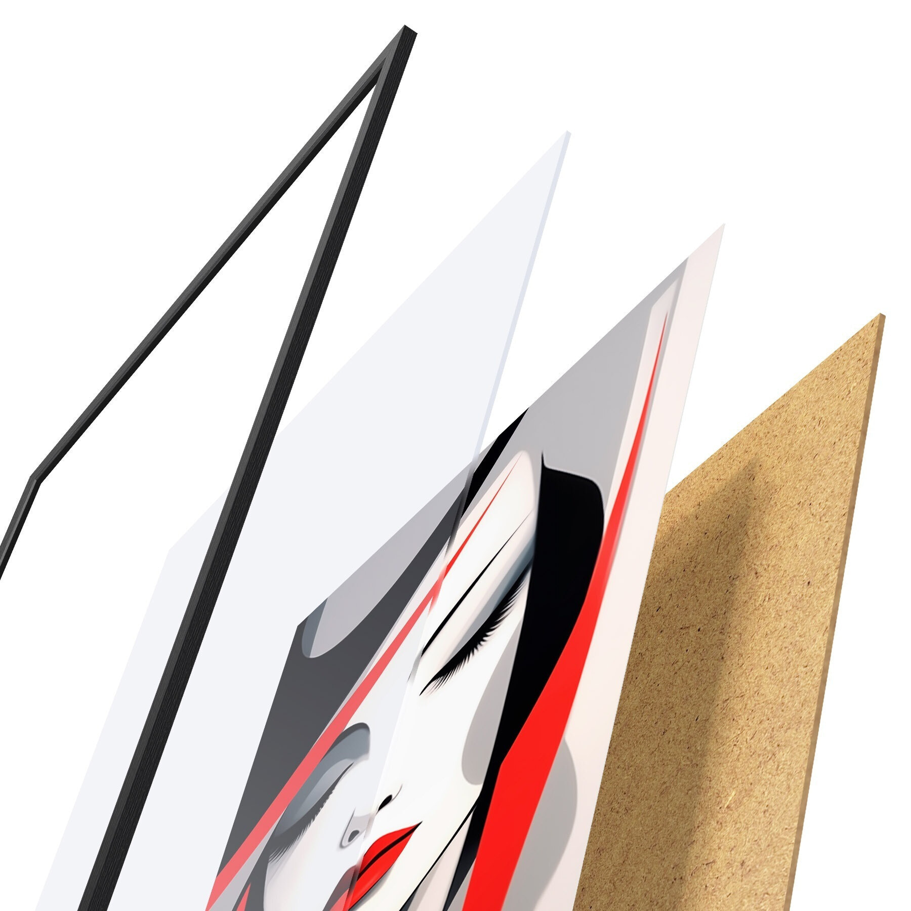 Plakatą sudaro rėmas, pleksiklas, atspausdintas vaizdas ir medžio drožlių plokštės pagrindas. Plakatą galima iš karto pakabinti ant sienos dėl kitoje pusėje esančių laikiklių.