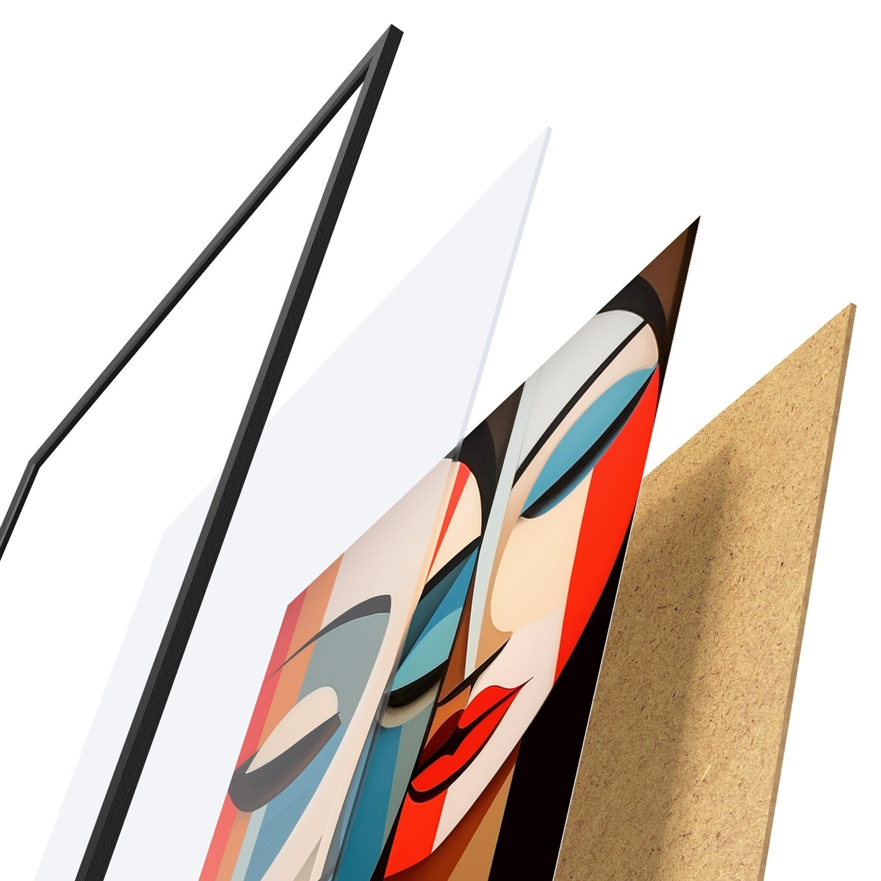 Plakatą sudaro rėmas, pleksiklas, atspausdintas vaizdas ir medžio drožlių plokštės pagrindas. Plakatą galima iš karto pakabinti ant sienos dėl kitoje pusėje esančių laikiklių.