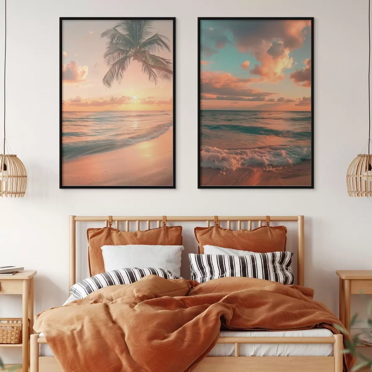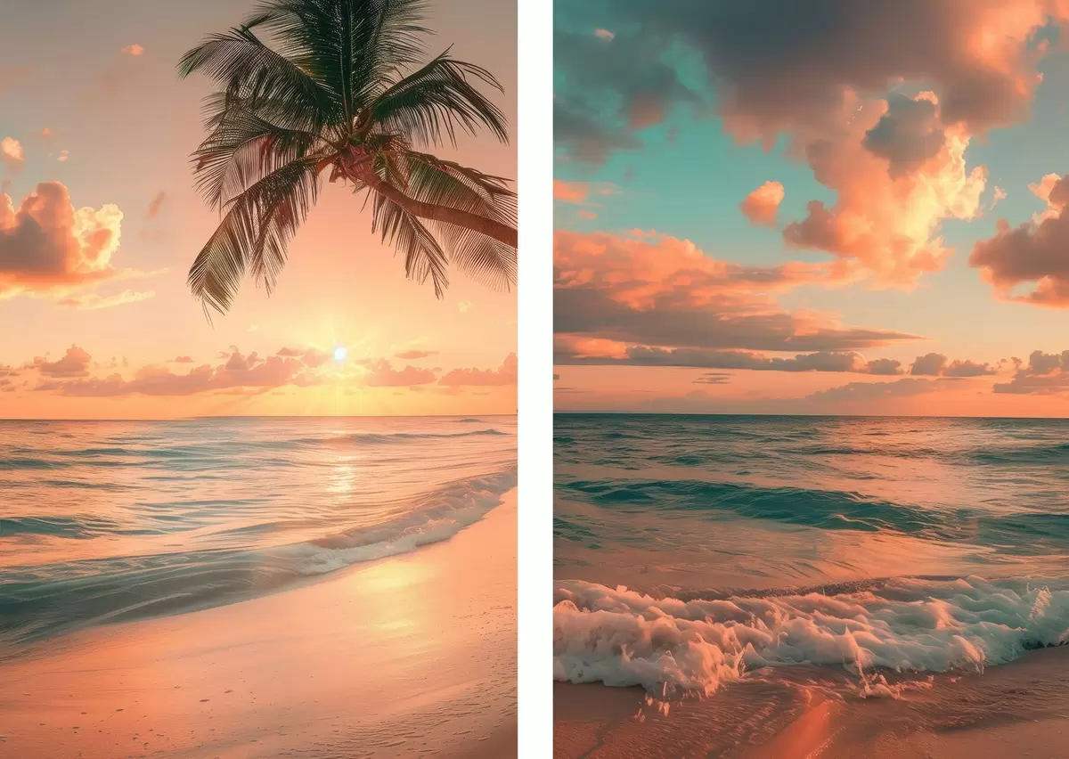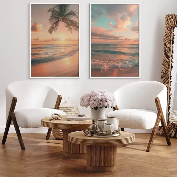 Plakatas Saulėlydis jūros pakrantėje su vaizdu į bangas d00787