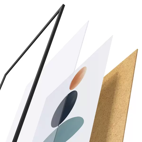 Plakatą sudaro rėmas, pleksiklas, atspausdintas vaizdas ir medžio drožlių plokštės pagrindas. Plakatą galima iš karto pakabinti ant sienos dėl kitoje pusėje esančių laikiklių.