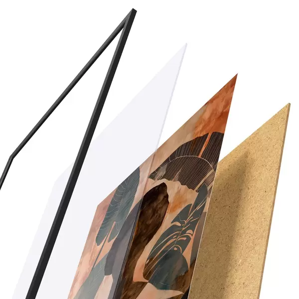 Plakatą sudaro rėmas, pleksiklas, atspausdintas vaizdas ir medžio drožlių plokštės pagrindas. Plakatą galima iš karto pakabinti ant sienos dėl kitoje pusėje esančių laikiklių.