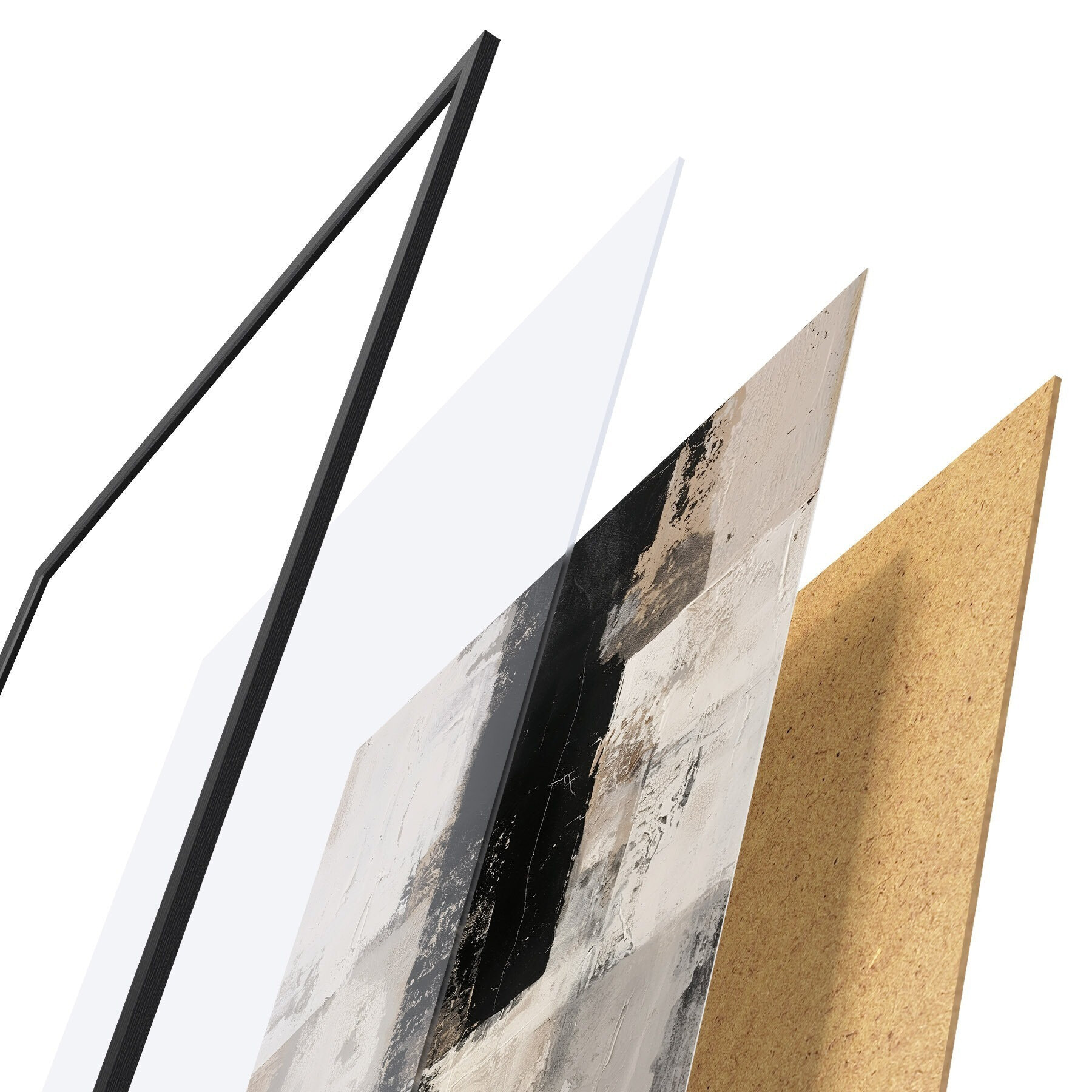 Plakatą sudaro rėmas, pleksiklas, atspausdintas vaizdas ir medžio drožlių plokštės pagrindas. Plakatą galima iš karto pakabinti ant sienos dėl kitoje pusėje esančių laikiklių.