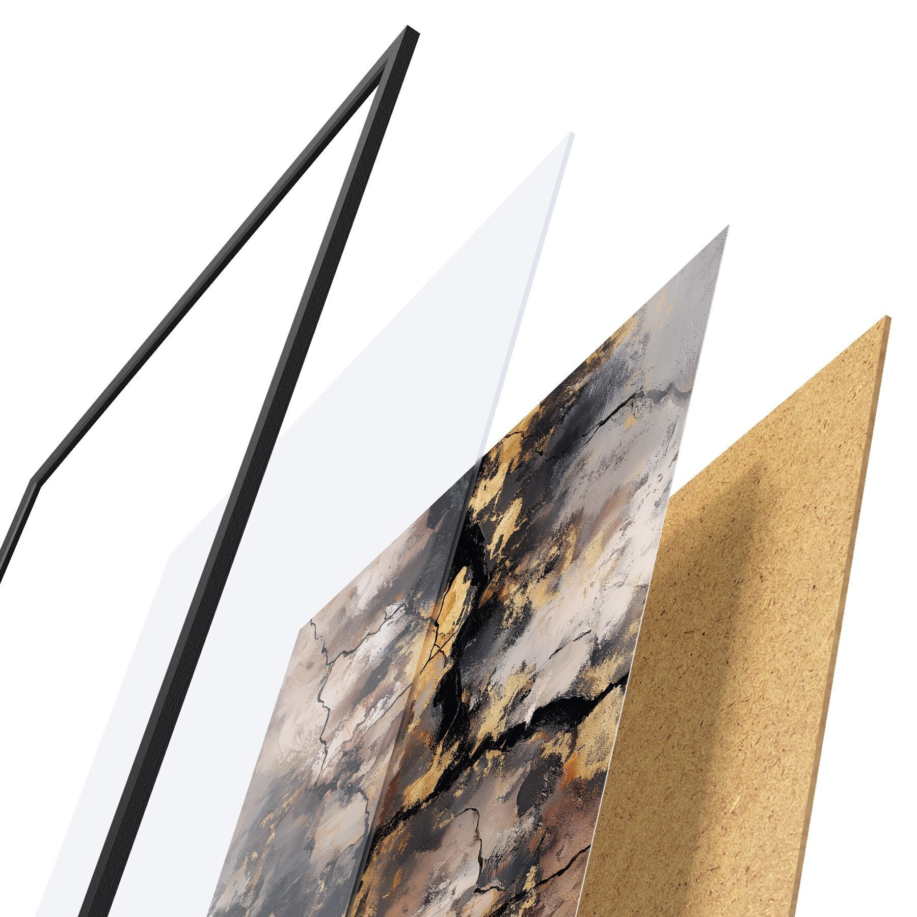 Plakatą sudaro rėmas, pleksiklas, atspausdintas vaizdas ir medžio drožlių plokštės pagrindas. Plakatą galima iš karto pakabinti ant sienos dėl kitoje pusėje esančių laikiklių.