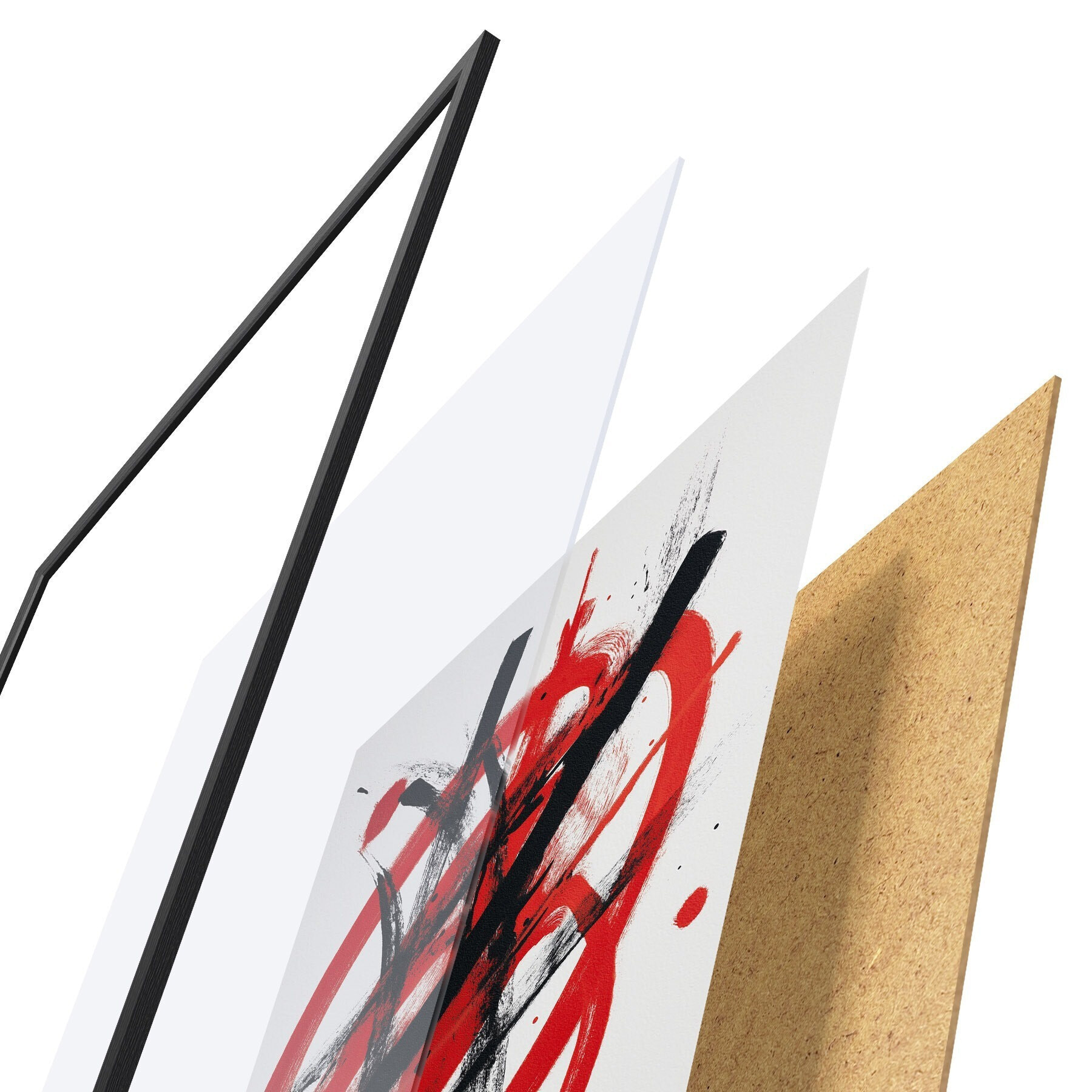 Plakatą sudaro rėmas, pleksiklas, atspausdintas vaizdas ir medžio drožlių plokštės pagrindas. Plakatą galima iš karto pakabinti ant sienos dėl kitoje pusėje esančių laikiklių.