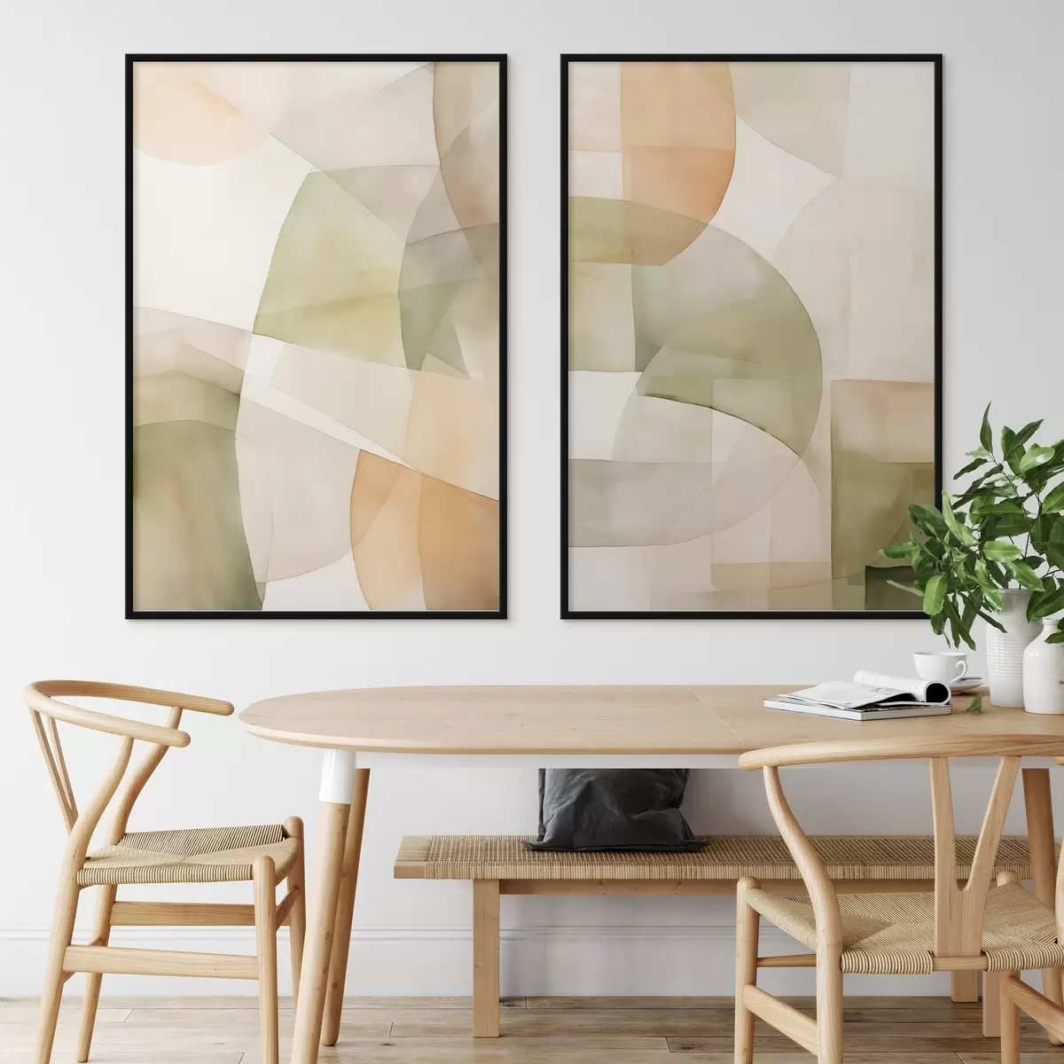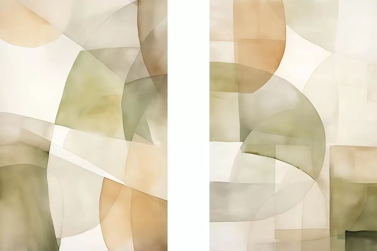 Plakatas Abstrakčios akvarelės tekstūros geometrinės formos žalios, rudos ir smėlio spalvų atspalviais d00820