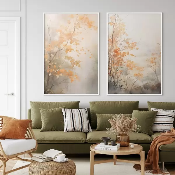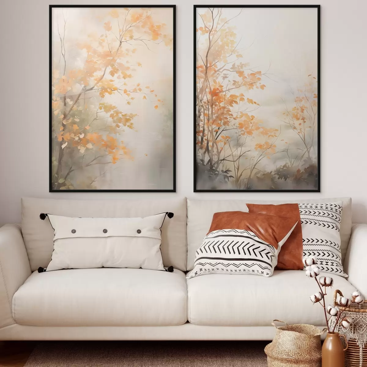Plakatas Rudens medžiai su oranžiniais lapais ir šakomis, švelnus akvarelės stilius, subtilūs potėpiai Ne d00826