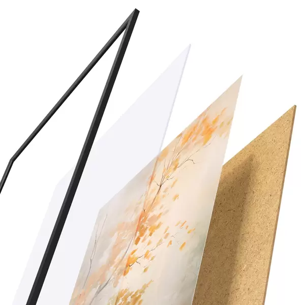 Plakatą sudaro rėmas, pleksiklas, atspausdintas vaizdas ir medžio drožlių plokštės pagrindas. Plakatą galima iš karto pakabinti ant sienos dėl kitoje pusėje esančių laikiklių.
