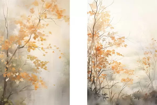 Plakatas Rudens medžiai su oranžiniais lapais ir šakomis, švelnus akvarelės stilius, subtilūs potėpiai Ne d00826