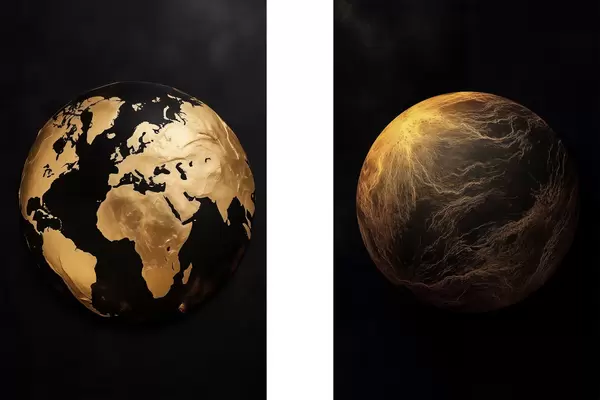 Plakatas Tekstūruotas abstraktus žemės gaublys ir planeta juodame fone, modernus minimalistinis menas d00827