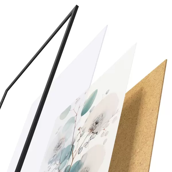 Plakatą sudaro rėmas, pleksiklas, atspausdintas vaizdas ir medžio drožlių plokštės pagrindas. Plakatą galima iš karto pakabinti ant sienos dėl kitoje pusėje esančių laikiklių.