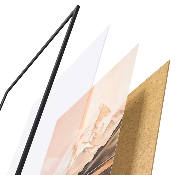 Plakatą sudaro rėmas, pleksiklas, atspausdintas vaizdas ir medžio drožlių plokštės pagrindas. Plakatą galima iš karto pakabinti ant sienos dėl kitoje pusėje esančių laikiklių.