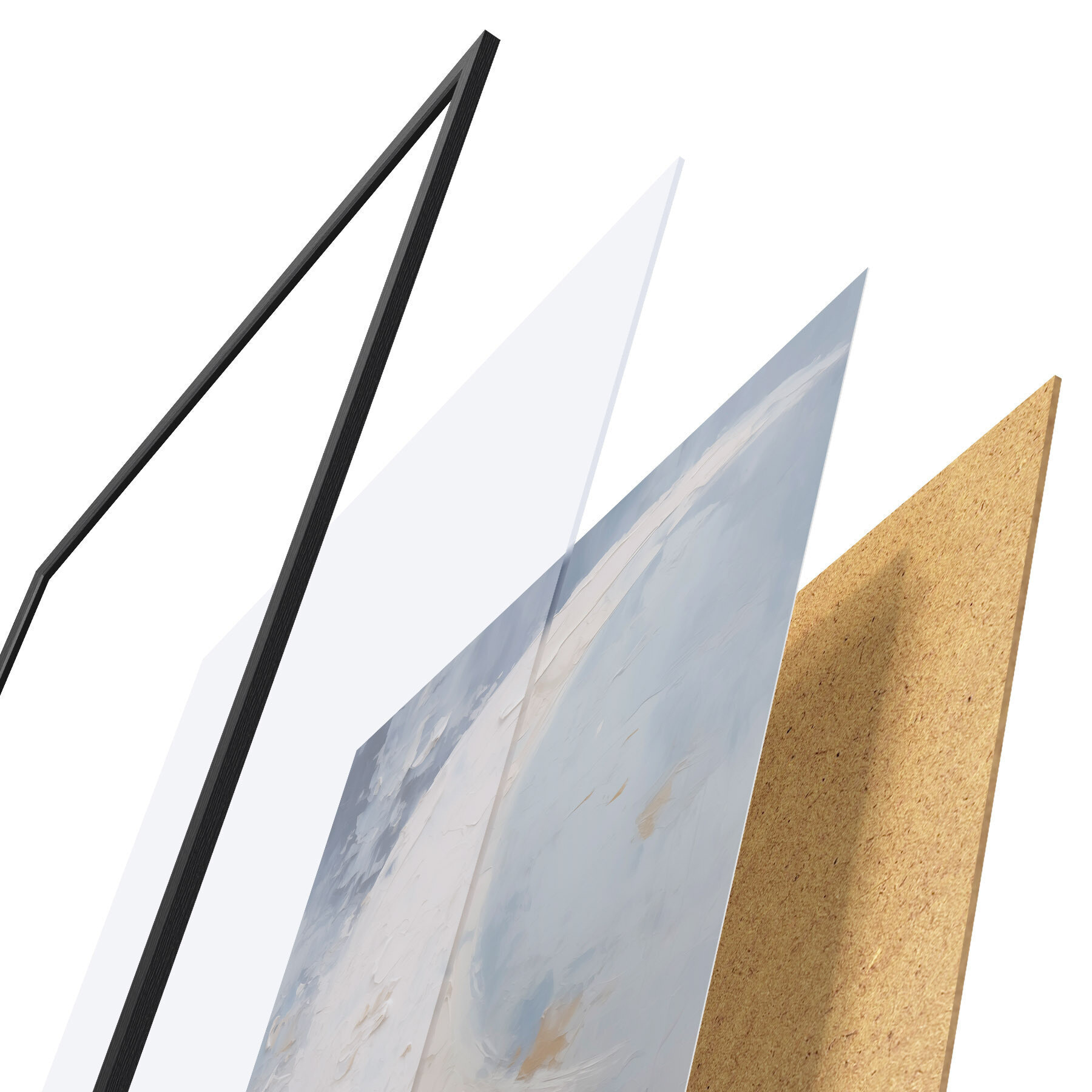 Plakatą sudaro rėmas, pleksiklas, atspausdintas vaizdas ir medžio drožlių plokštės pagrindas. Plakatą galima iš karto pakabinti ant sienos dėl kitoje pusėje esančių laikiklių.