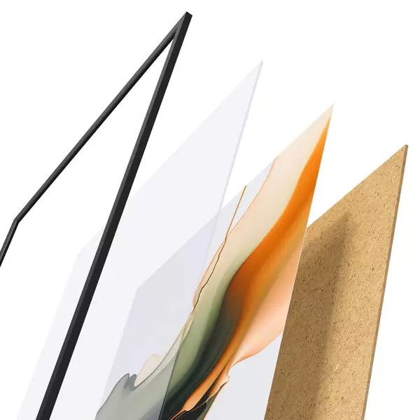Plakatą sudaro rėmas, pleksiklas, atspausdintas vaizdas ir medžio drožlių plokštės pagrindas. Plakatą galima iš karto pakabinti ant sienos dėl kitoje pusėje esančių laikiklių.
