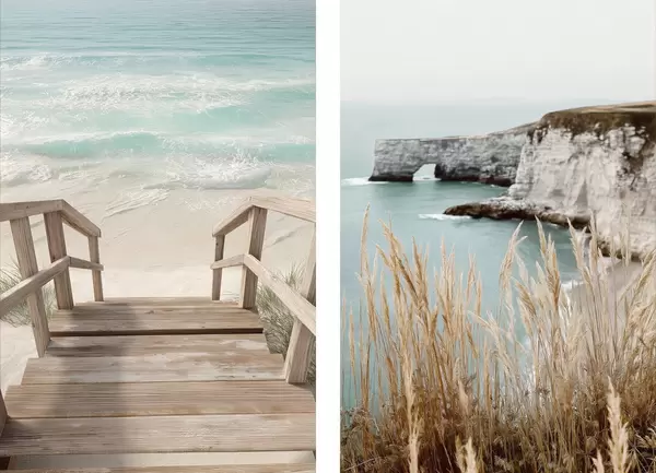 Plakatas Pakrantės uolos ir sausa žolė prie turkio spalvos jūros Ne d00875