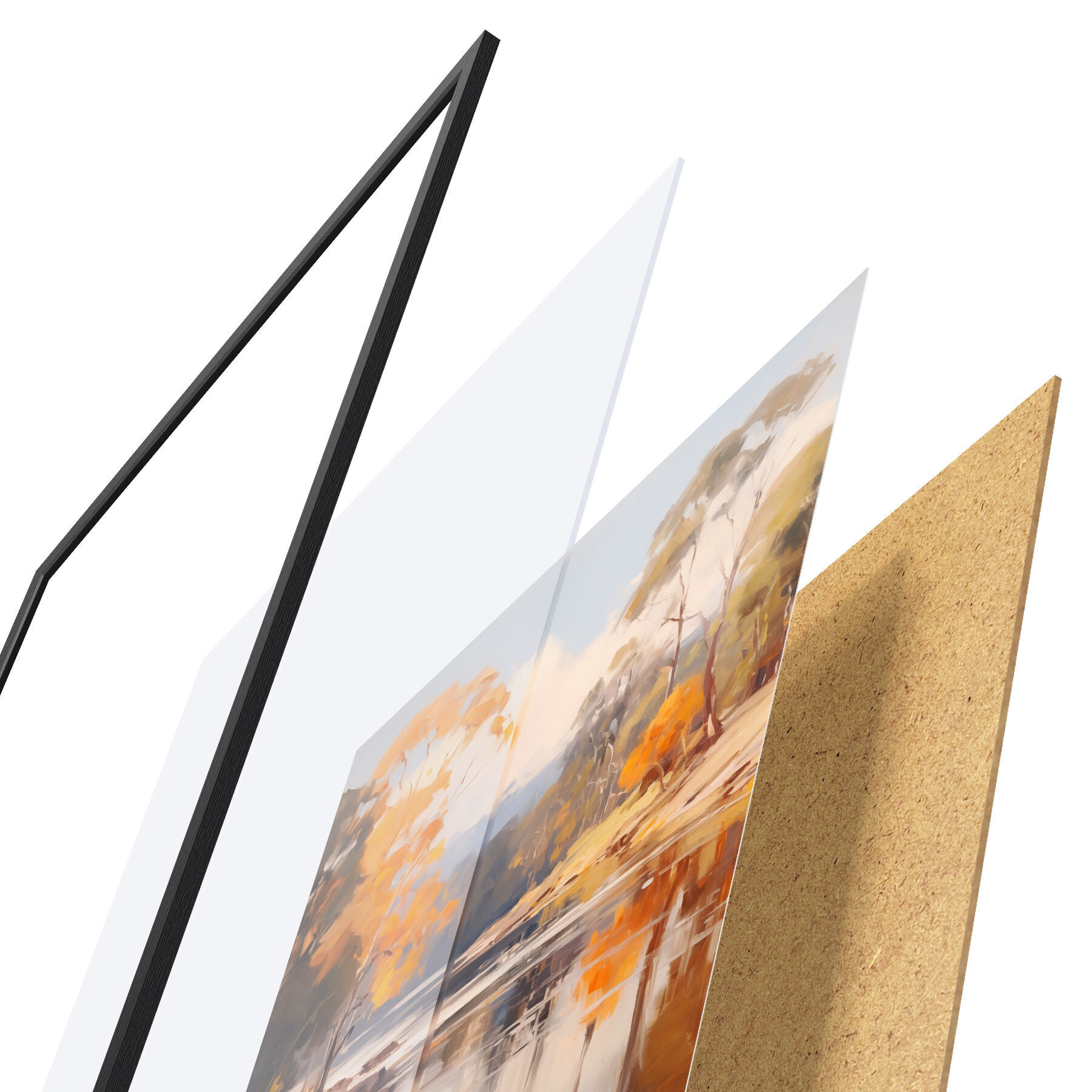 Plakatą sudaro rėmas, pleksiklas, atspausdintas vaizdas ir medžio drožlių plokštės pagrindas. Plakatą galima iš karto pakabinti ant sienos dėl kitoje pusėje esančių laikiklių.