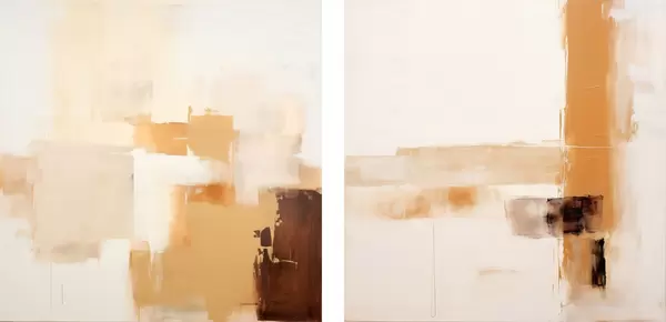 Plakatas Abstraktaus dviejų dalių kompozicija smėlio ir rudos spalvos d00891