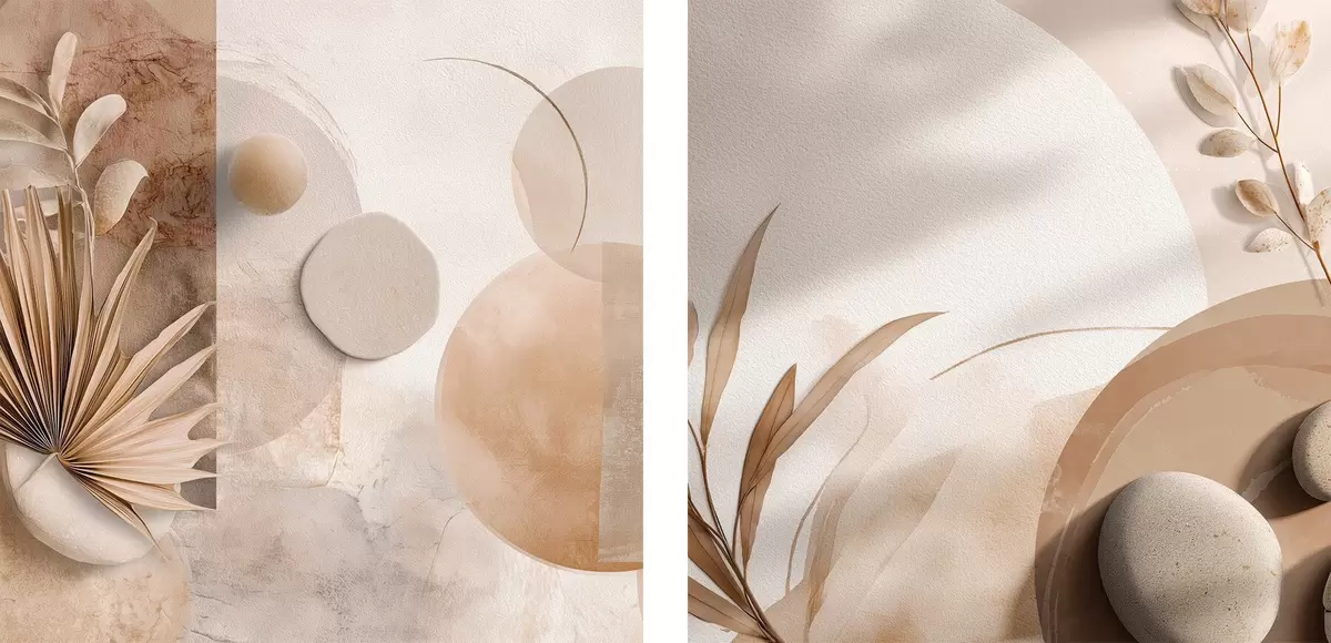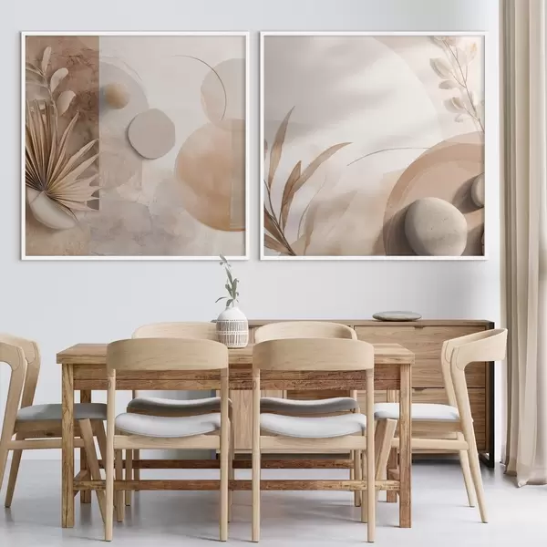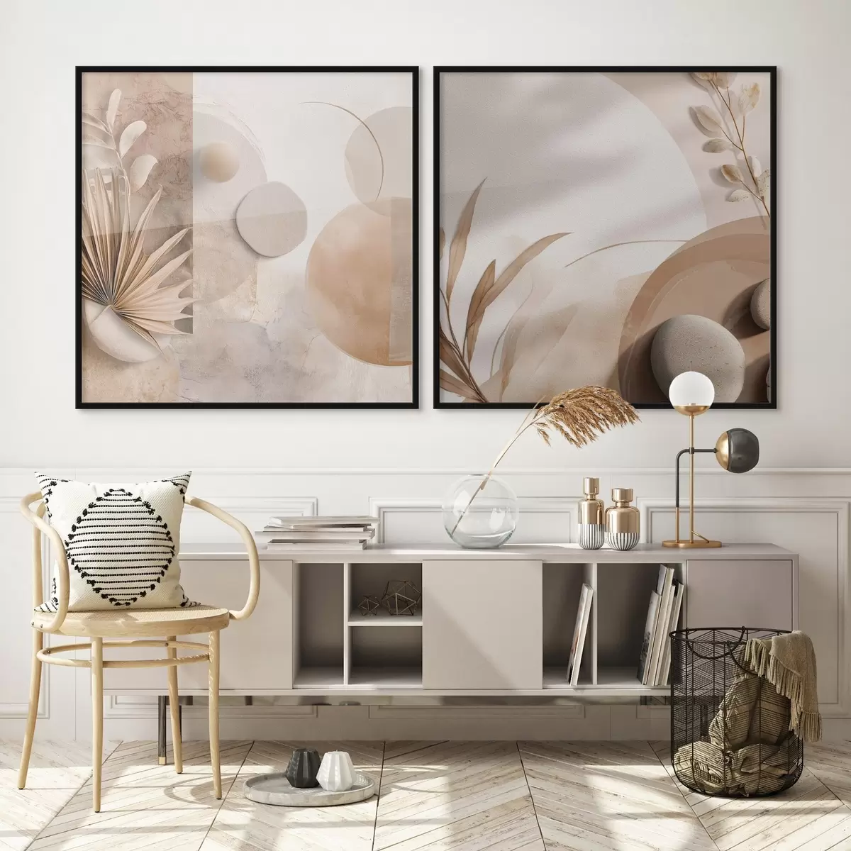 Plakatas Dvi drobės su išdžiovintais lapais ir tekstūrinėmis formomis Ne d00893