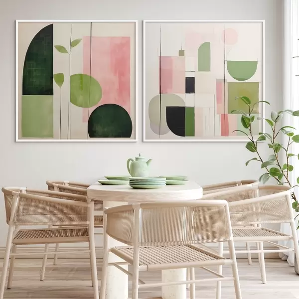 Plakatas Minimalistinis diptikas su stilizuota flora ir geometrija Ne d00894