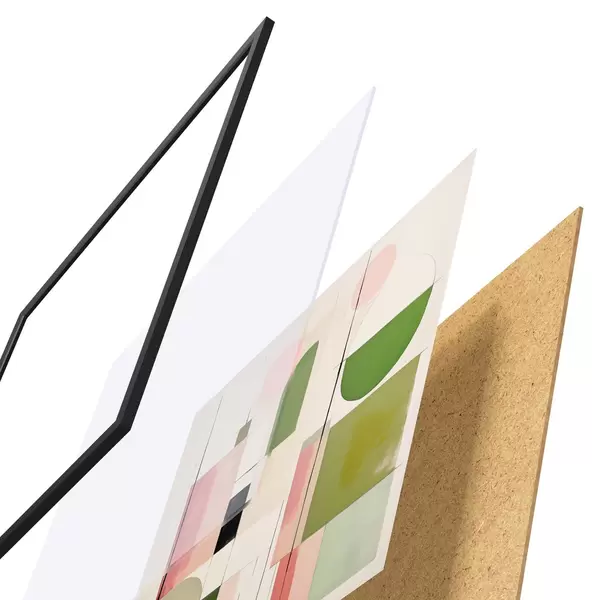 Plakatą sudaro rėmas, pleksiklas, atspausdintas vaizdas ir medžio drožlių plokštės pagrindas. Plakatą galima iš karto pakabinti ant sienos dėl kitoje pusėje esančių laikiklių.
