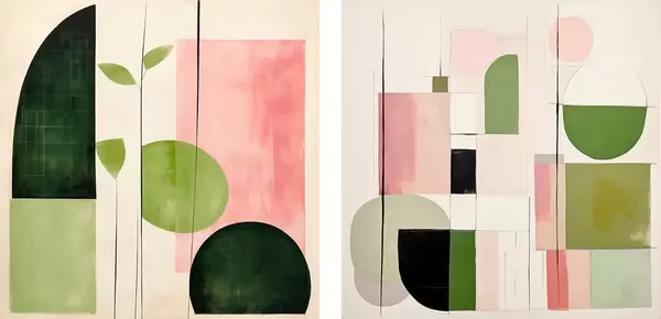 Plakatas Minimalistinis diptikas su stilizuota flora ir geometrija d00894