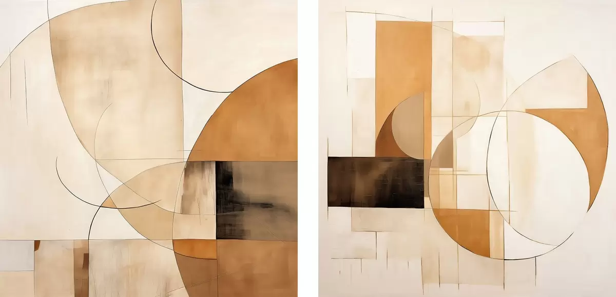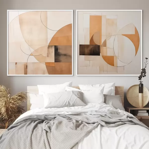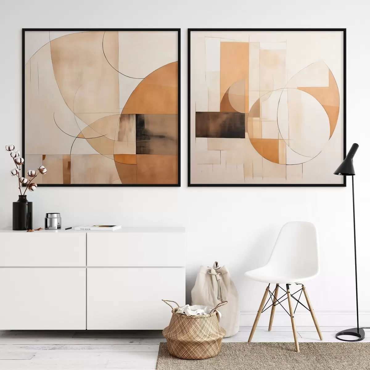 Plakatas Šiuolaikinė abstrakcija su apskritimais ir linijomis kavos su pienu spalvomis Ne d00898