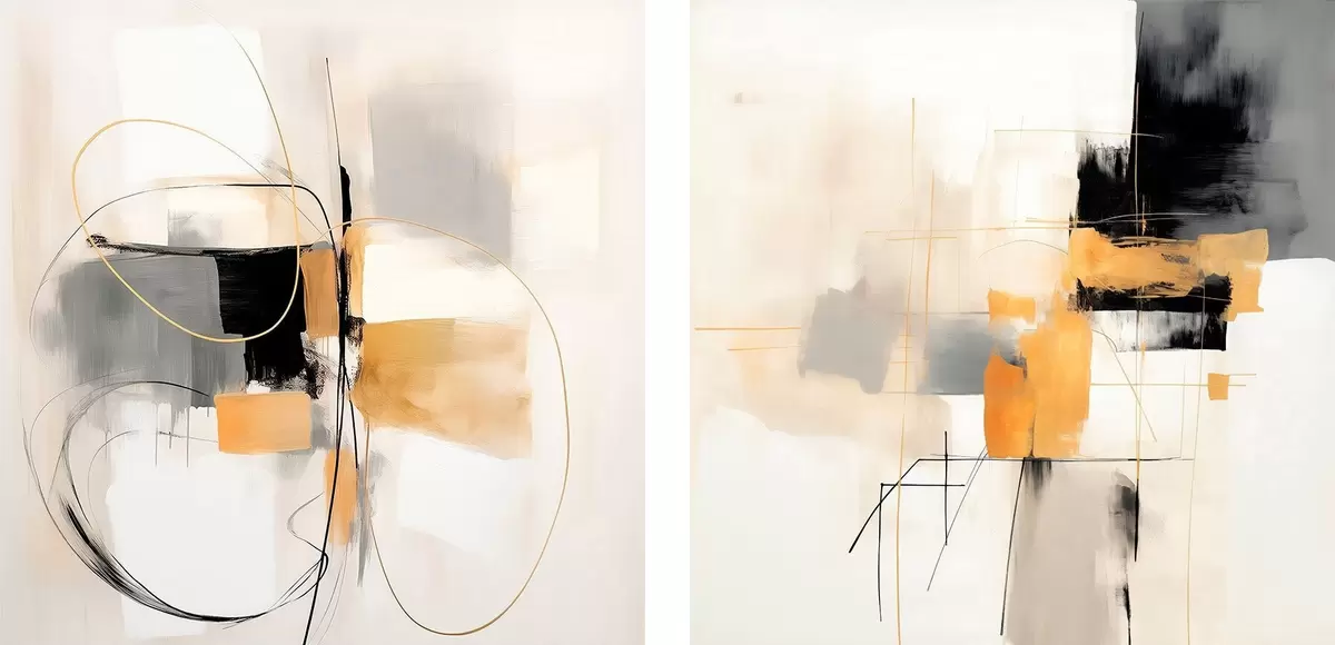 Plakatas Abstrakčioji geometrija, ochra, pilka ir juoda d00899