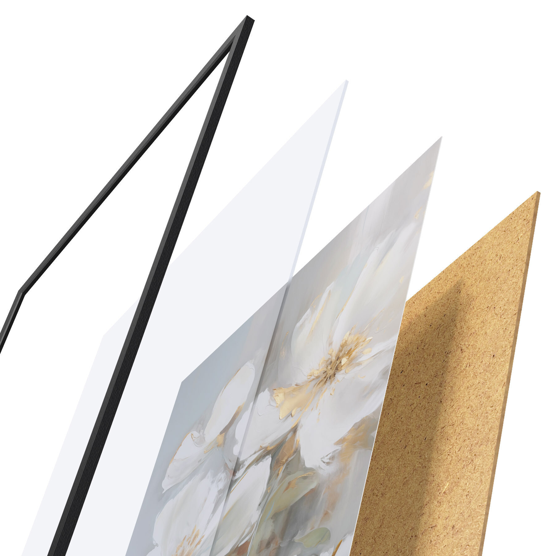 Plakatą sudaro rėmas, pleksiklas, atspausdintas vaizdas ir medžio drožlių plokštės pagrindas. Plakatą galima iš karto pakabinti ant sienos dėl kitoje pusėje esančių laikiklių.