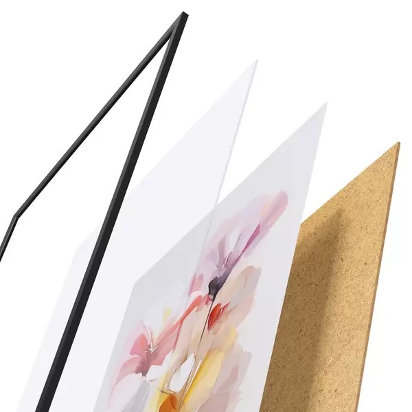 Plakatą sudaro rėmas, pleksiklas, atspausdintas vaizdas ir medžio drožlių plokštės pagrindas. Plakatą galima iš karto pakabinti ant sienos dėl kitoje pusėje esančių laikiklių.