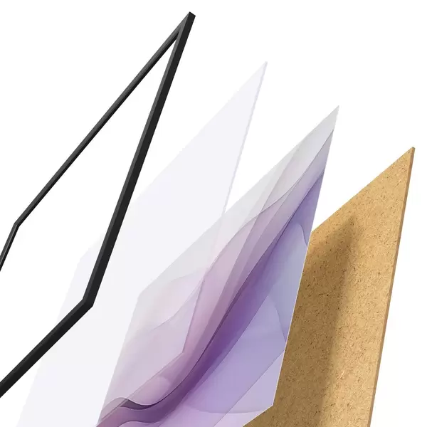 Plakatą sudaro rėmas, pleksiklas, atspausdintas vaizdas ir medžio drožlių plokštės pagrindas. Plakatą galima iš karto pakabinti ant sienos dėl kitoje pusėje esančių laikiklių.