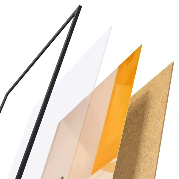 Plakatą sudaro rėmas, pleksiklas, atspausdintas vaizdas ir medžio drožlių plokštės pagrindas. Plakatą galima iš karto pakabinti ant sienos dėl kitoje pusėje esančių laikiklių.
