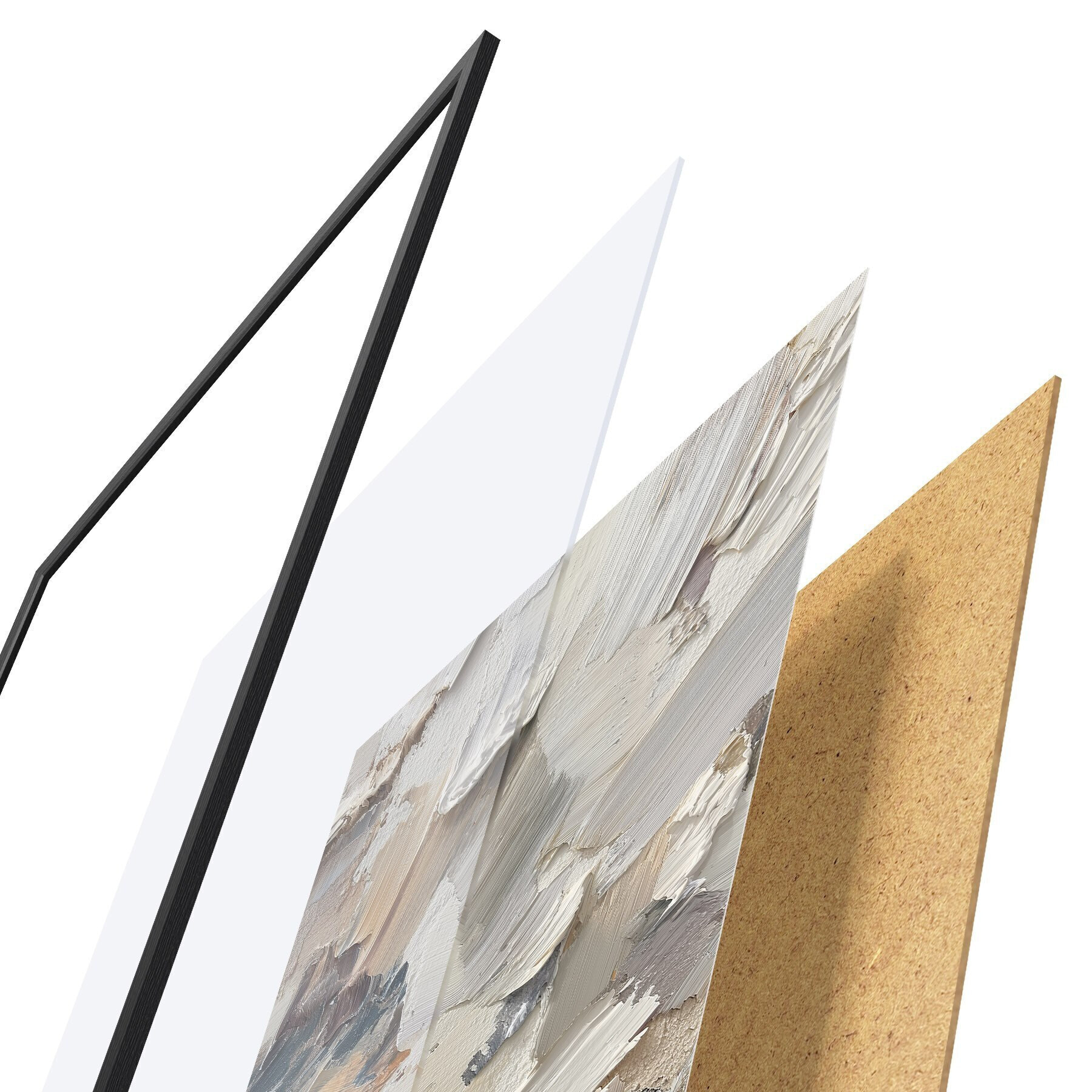 Plakatą sudaro rėmas, pleksiklas, atspausdintas vaizdas ir medžio drožlių plokštės pagrindas. Plakatą galima iš karto pakabinti ant sienos dėl kitoje pusėje esančių laikiklių.