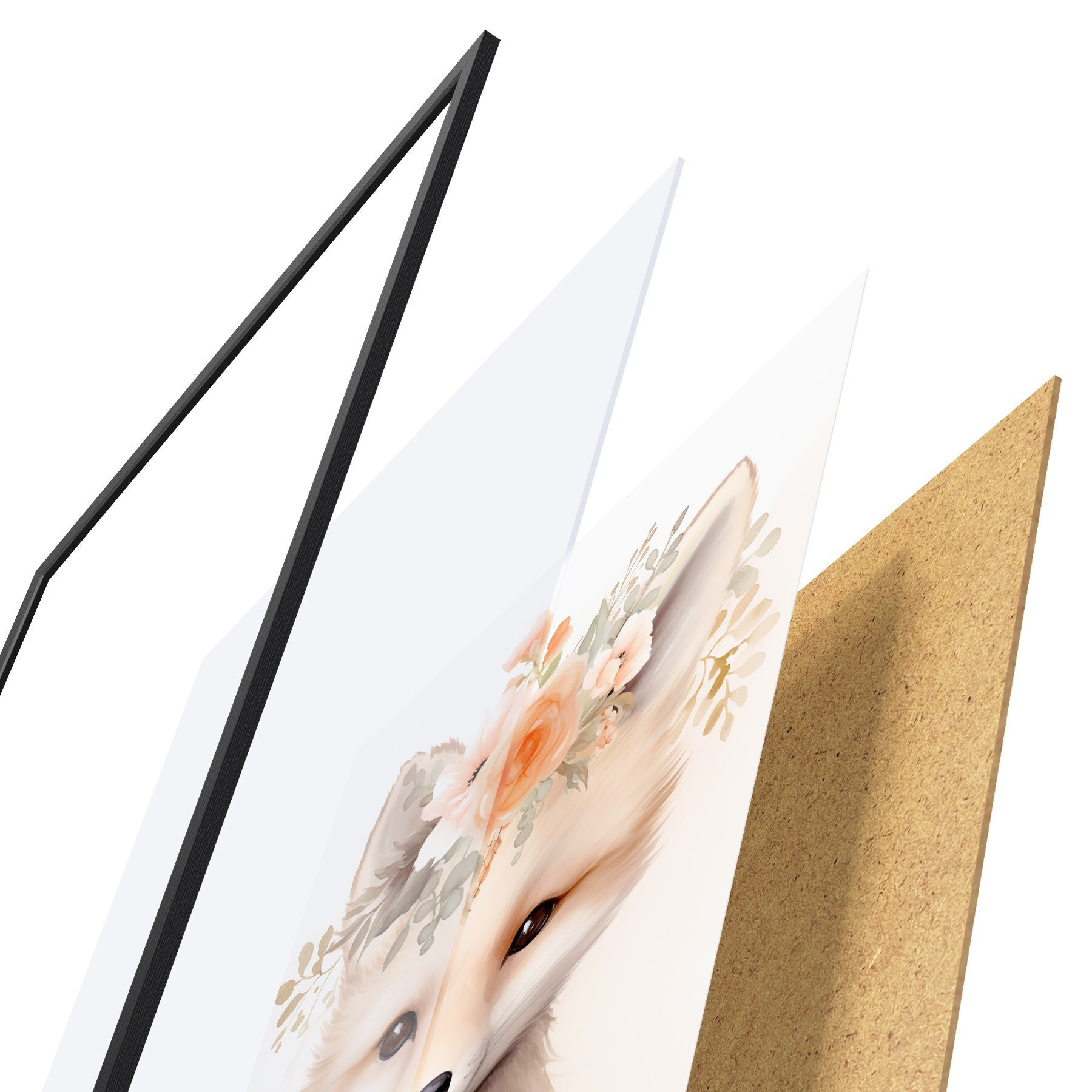 Plakatą sudaro rėmas, pleksiklas, atspausdintas vaizdas ir medžio drožlių plokštės pagrindas. Plakatą galima iš karto pakabinti ant sienos dėl kitoje pusėje esančių laikiklių.