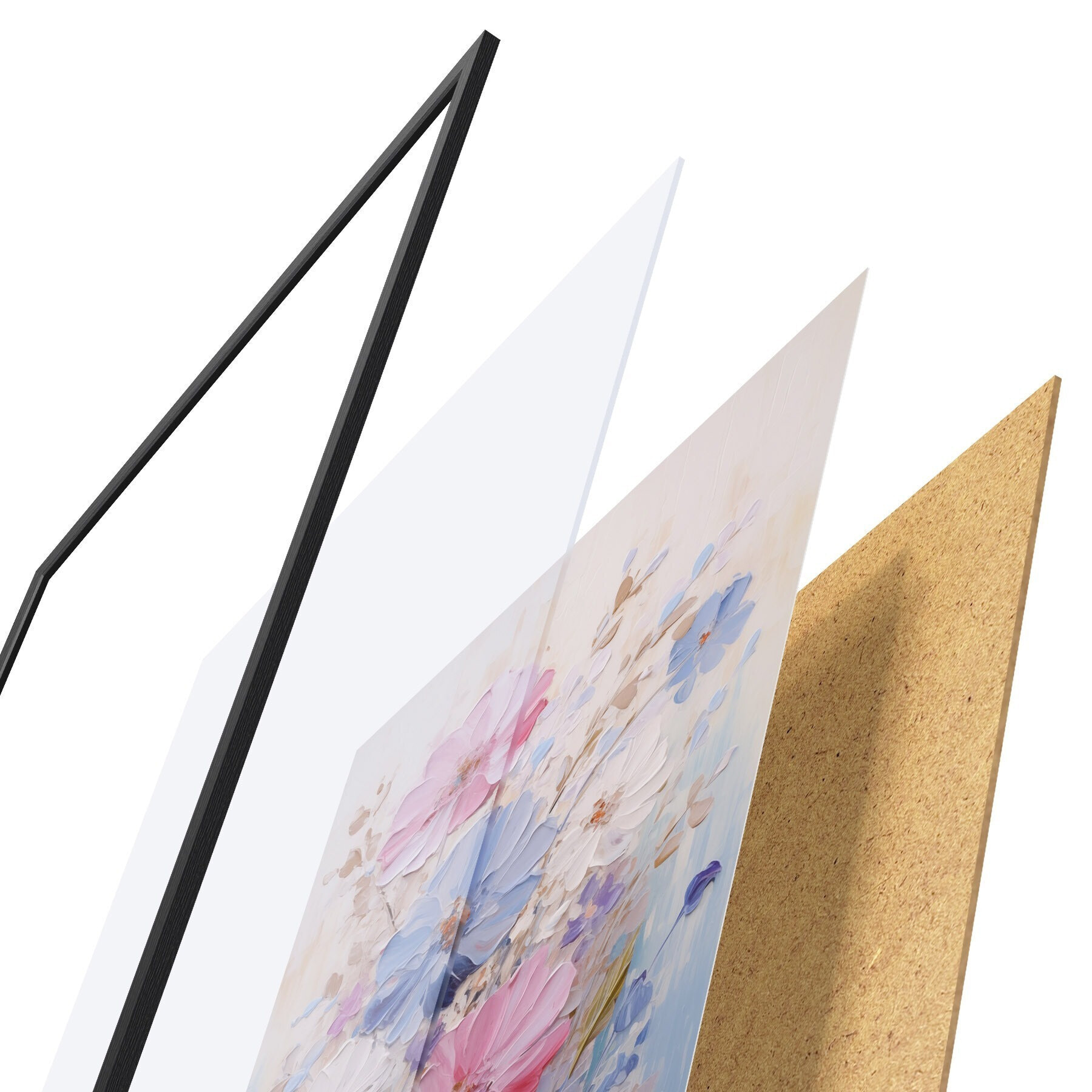 Plakatą sudaro rėmas, pleksiklas, atspausdintas vaizdas ir medžio drožlių plokštės pagrindas. Plakatą galima iš karto pakabinti ant sienos dėl kitoje pusėje esančių laikiklių.