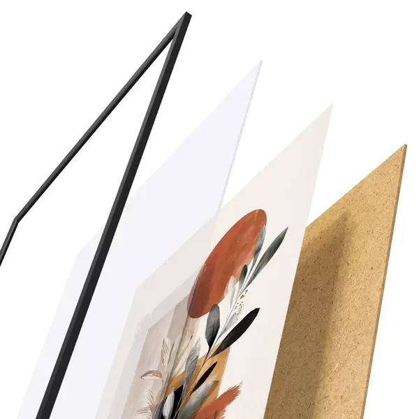 Plakatą sudaro rėmas, pleksiklas, atspausdintas vaizdas ir medžio drožlių plokštės pagrindas. Plakatą galima iš karto pakabinti ant sienos dėl kitoje pusėje esančių laikiklių.