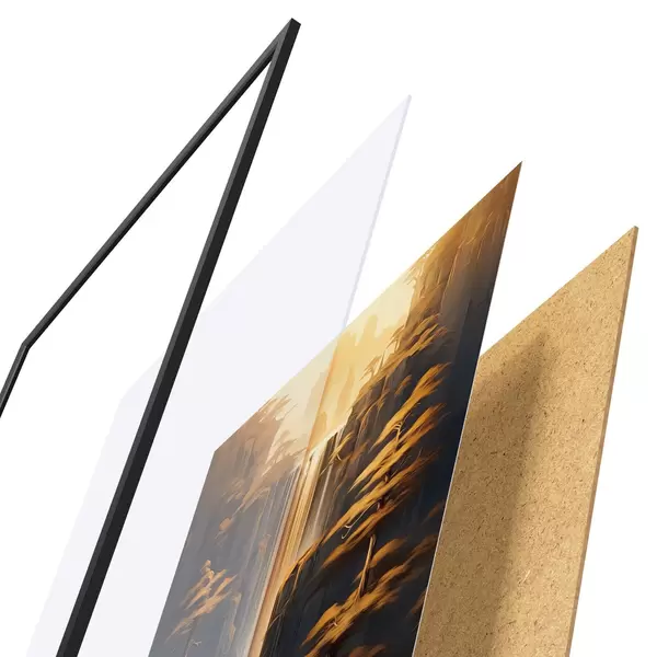 Plakatą sudaro rėmas, pleksiklas, atspausdintas vaizdas ir medžio drožlių plokštės pagrindas. Plakatą galima iš karto pakabinti ant sienos dėl kitoje pusėje esančių laikiklių.