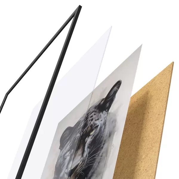 Plakatą sudaro rėmas, pleksiklas, atspausdintas vaizdas ir medžio drožlių plokštės pagrindas. Plakatą galima iš karto pakabinti ant sienos dėl kitoje pusėje esančių laikiklių.