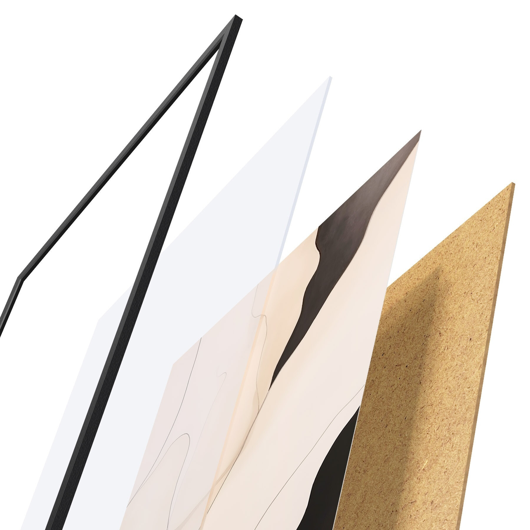 Plakatą sudaro rėmas, pleksiklas, atspausdintas vaizdas ir medžio drožlių plokštės pagrindas. Plakatą galima iš karto pakabinti ant sienos dėl kitoje pusėje esančių laikiklių.