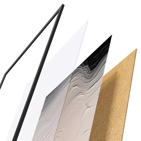 Plakatą sudaro rėmas, pleksiklas, atspausdintas vaizdas ir medžio drožlių plokštės pagrindas. Plakatą galima iš karto pakabinti ant sienos dėl kitoje pusėje esančių laikiklių.
