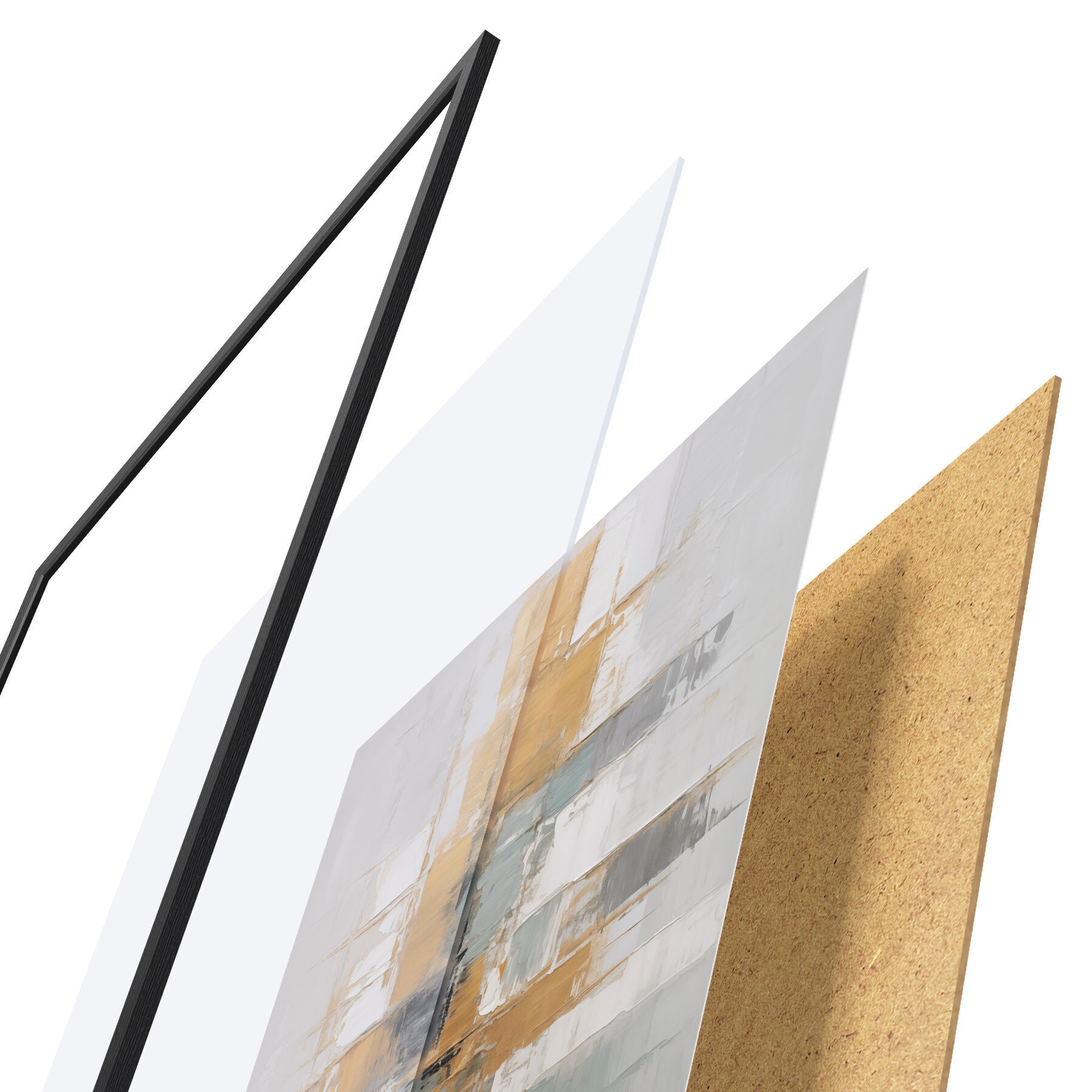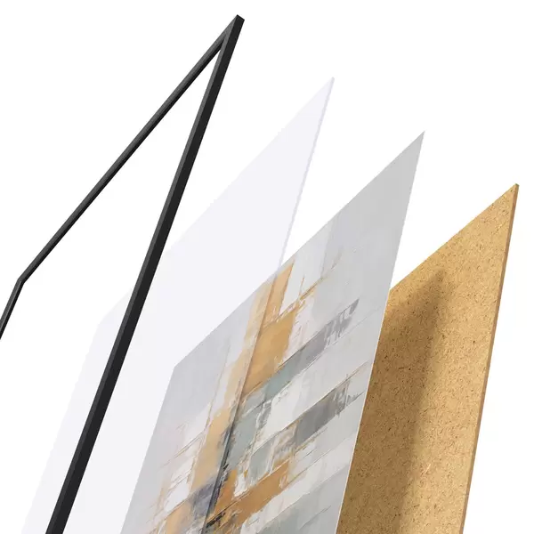 Plakatą sudaro rėmas, pleksiklas, atspausdintas vaizdas ir medžio drožlių plokštės pagrindas. Plakatą galima iš karto pakabinti ant sienos dėl kitoje pusėje esančių laikiklių.